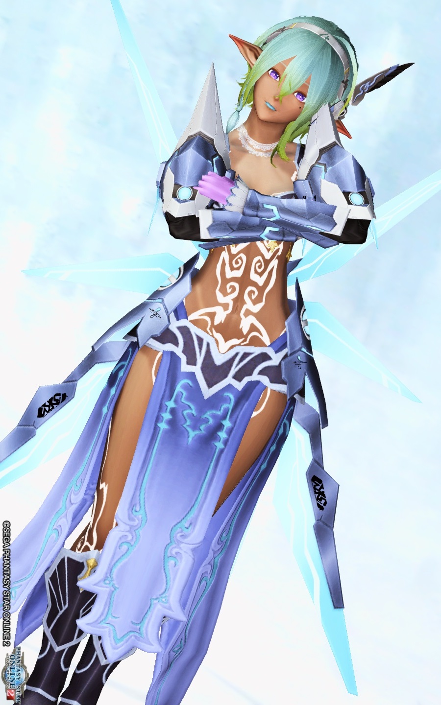 肌の露出部分はそのままだと浮く感じがしたので、黒のタトゥーを使ってみました。
