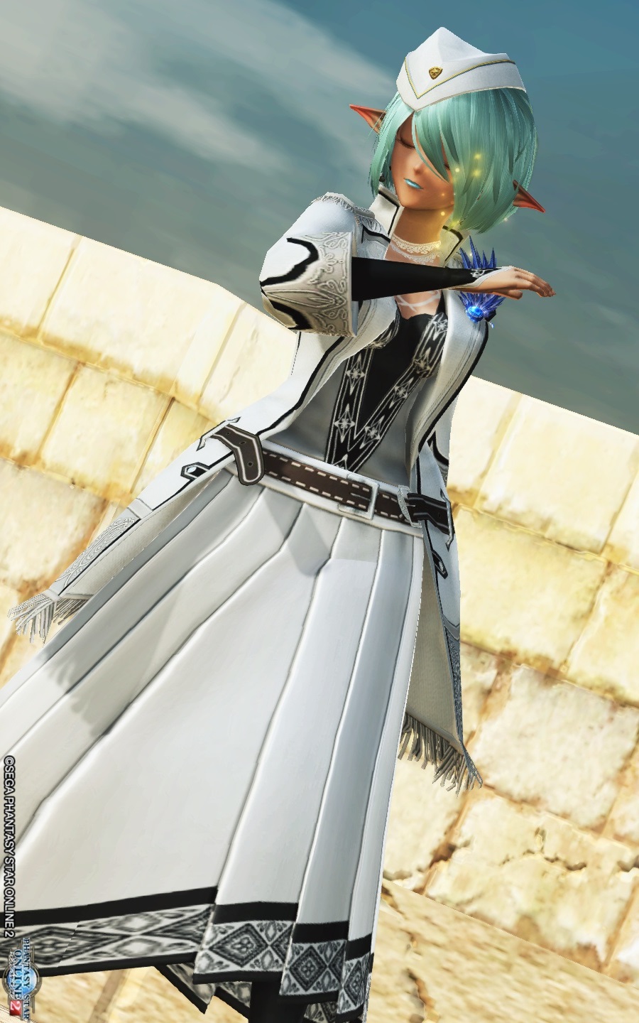 シンプルなファンタジー系真っ白コーデにブローチで差し色を、との感じ。