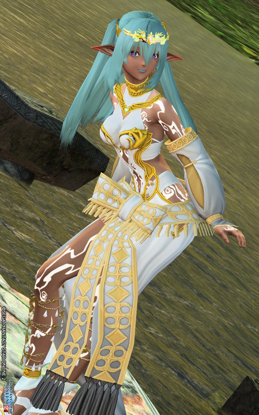 神官エルミルの髪飾りの調整は、後ろから見るとこのようになります。