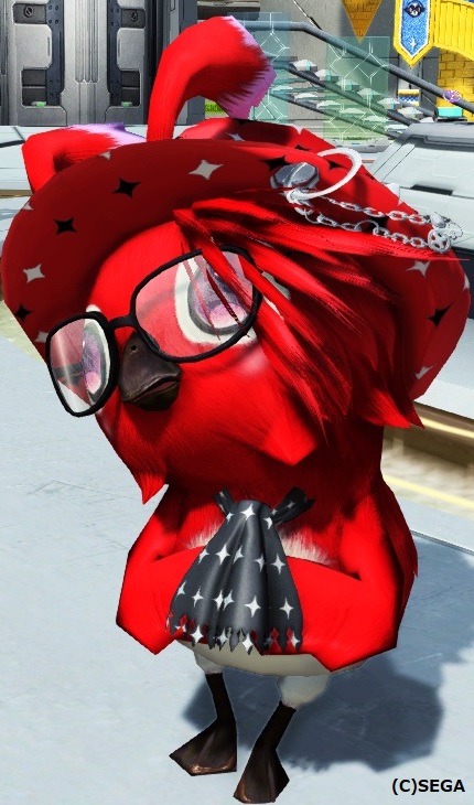 帽子とスカーフは赤色に合わせて同種色違いの物に変更、そしてメガネを追加。