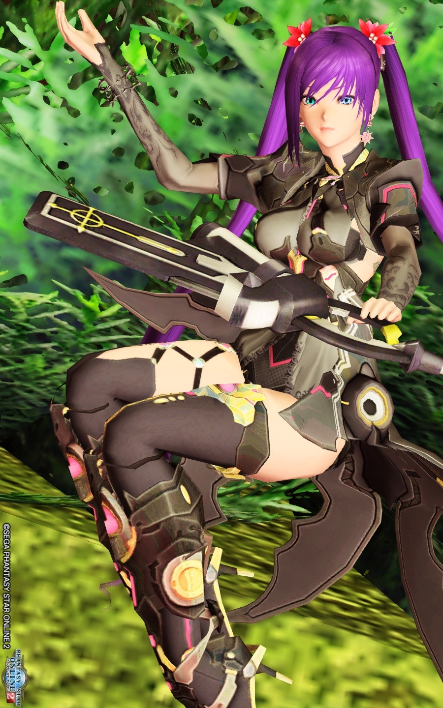 角度とサイズ変更も使い、ツインテ部分に無理矢理合わせています。