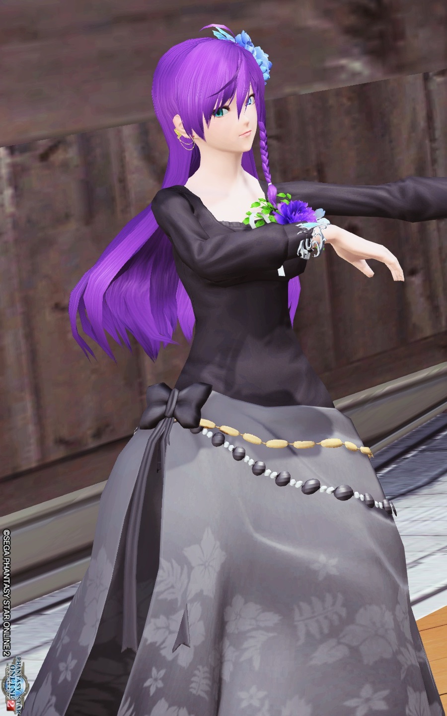 胸元のコサージュは最小にした後、位置角度を使って位置調整をしました。