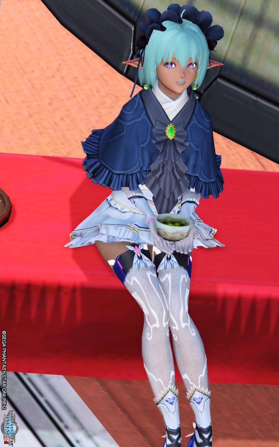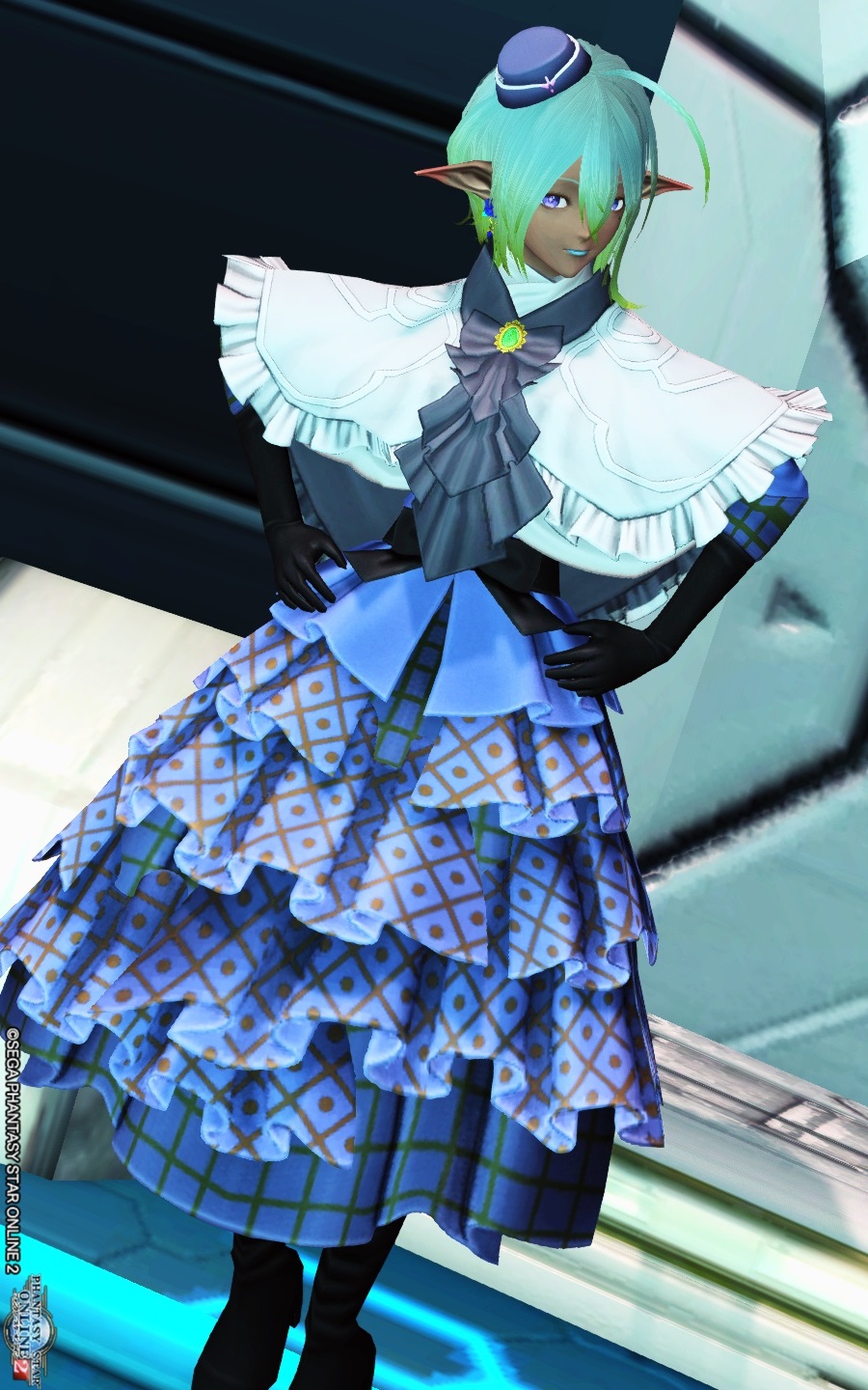 ボンネット帽を少々髪型に合わせて動かした程度です。
