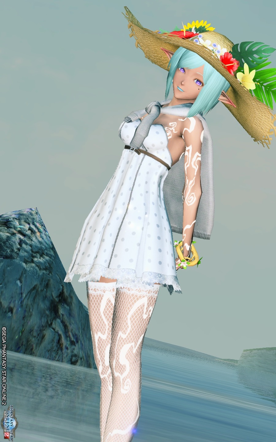 首回りが寂しかったので肩掛けカーディガンを使いました。…涼やかコーデ?
