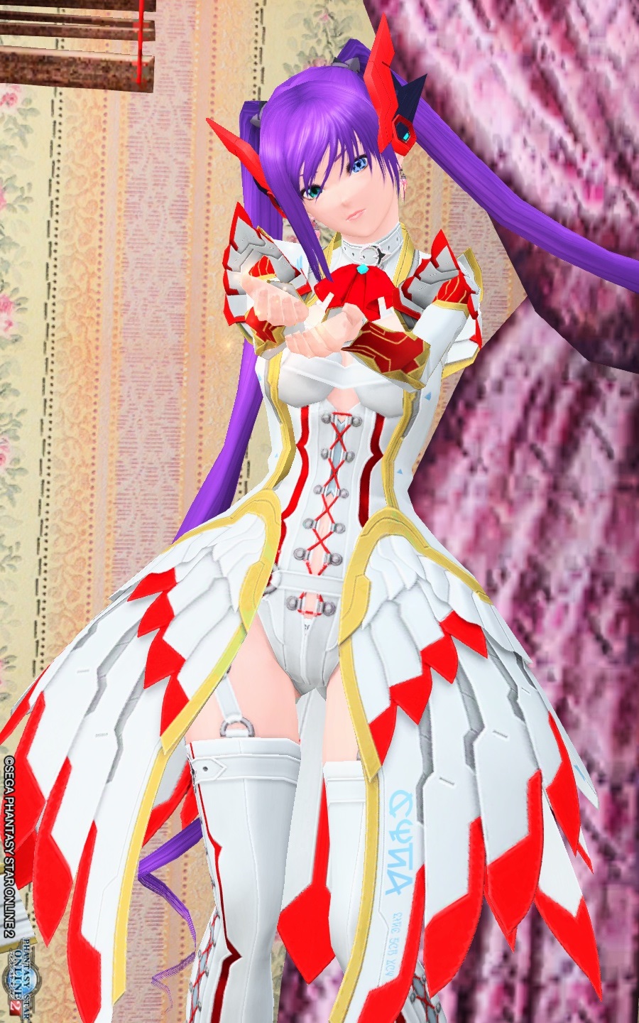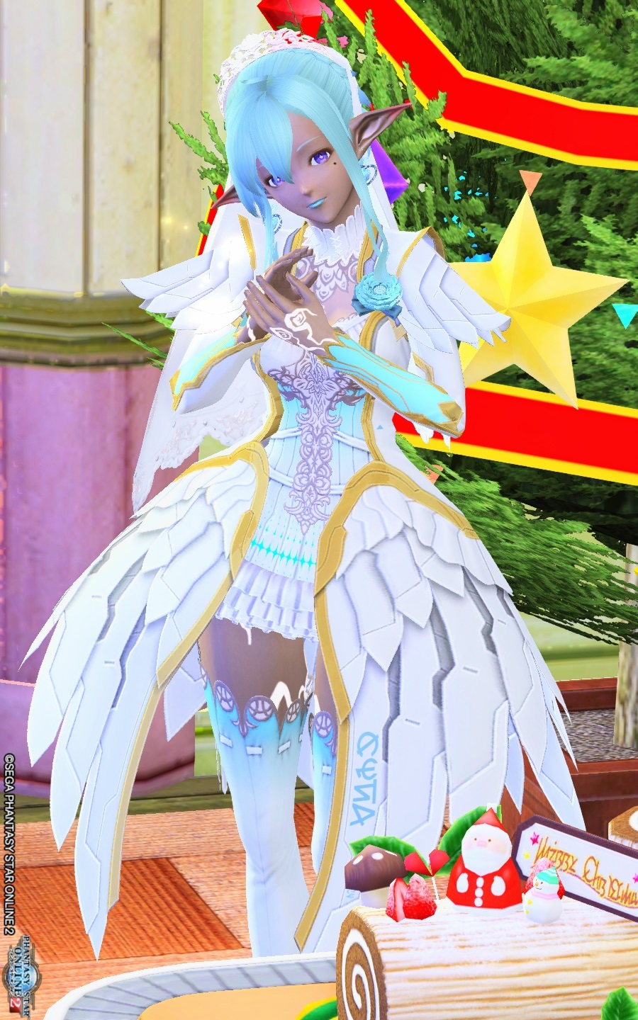 ヘッドギアは角度位置とサイズを変えて耳を覆い、ロボ耳風にしています。