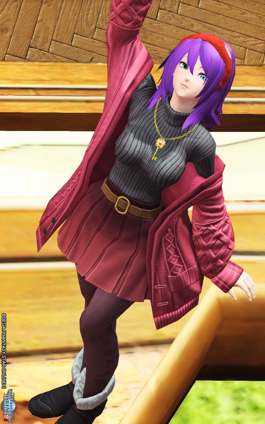 着崩し系と言うか、ずり落ち系と言うか()、この手のOuのコーデも