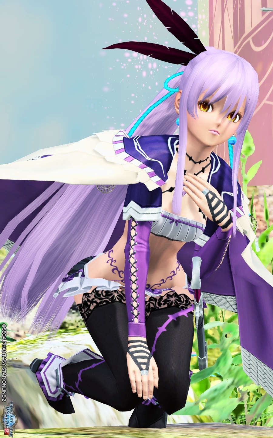 露出が多めなので、グローブやサイハイ等で多少肌を覆っています。