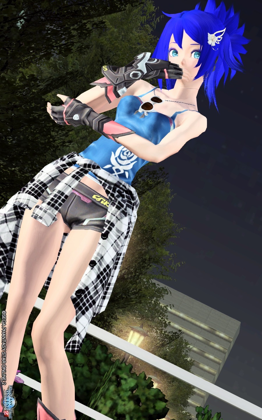 真夏の暑い時期に、見た目だけでも涼しげに感じるコーデを…と思い、やってみたモノ。