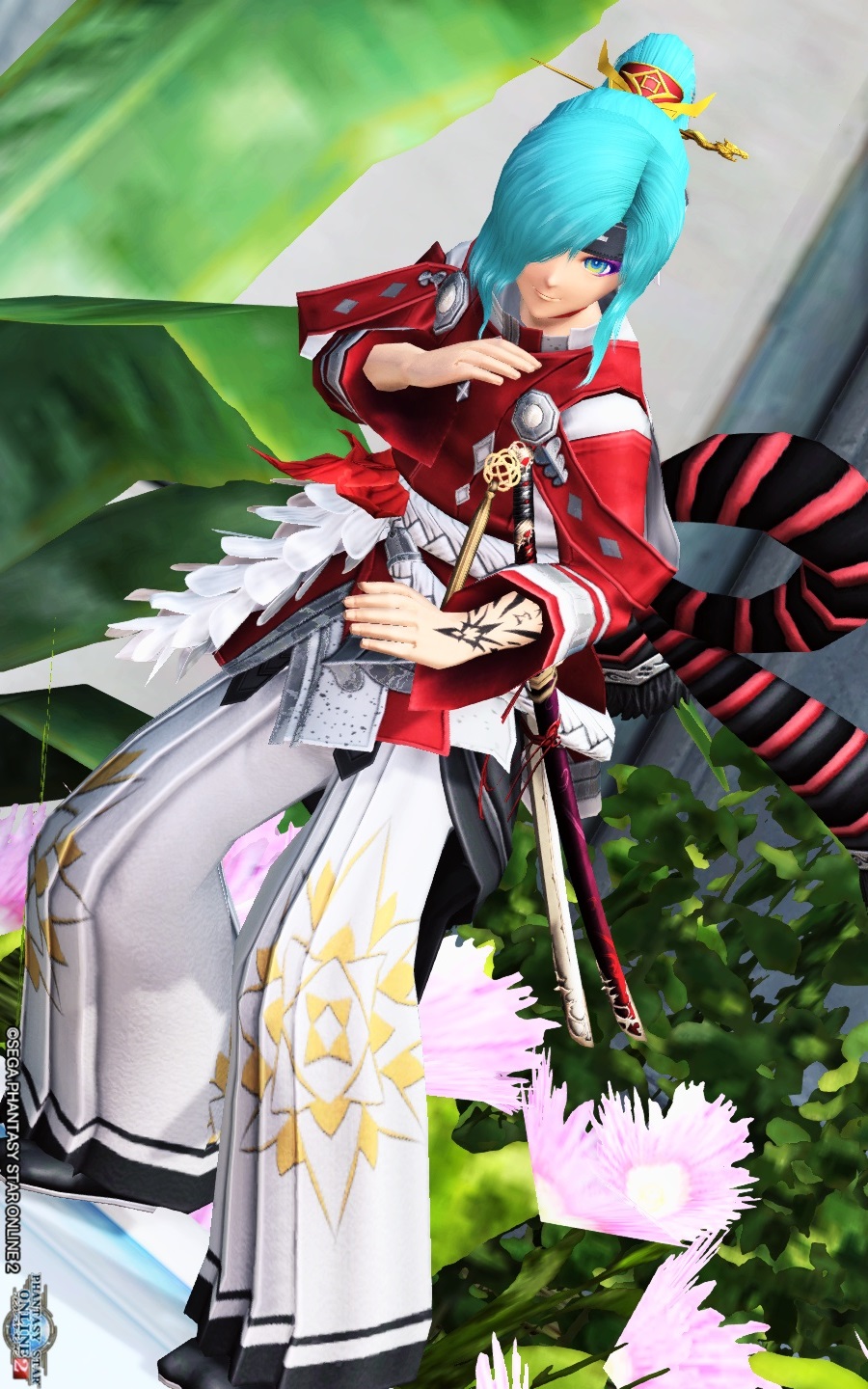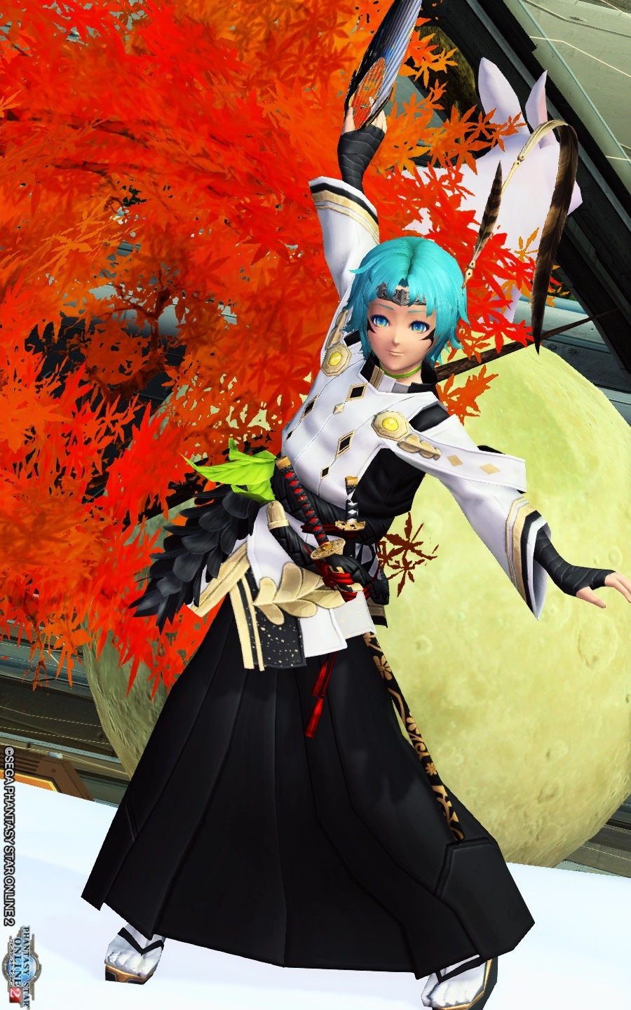 和風に振ってみたコーデになります。小太刀を大きくすれば短剣に見える?