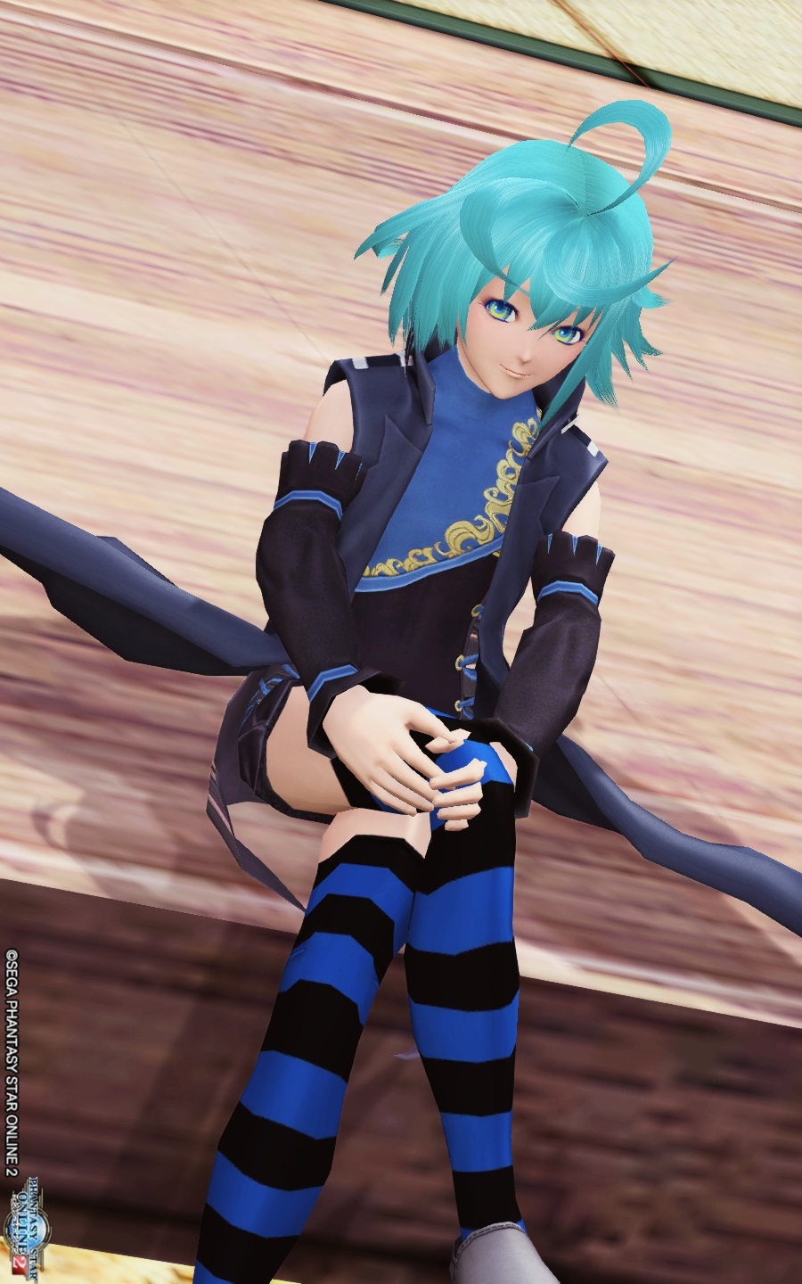 靴アクセをレザーブーツ黒>スリッポン黒に変更し、ボディペのニーハイを追加。