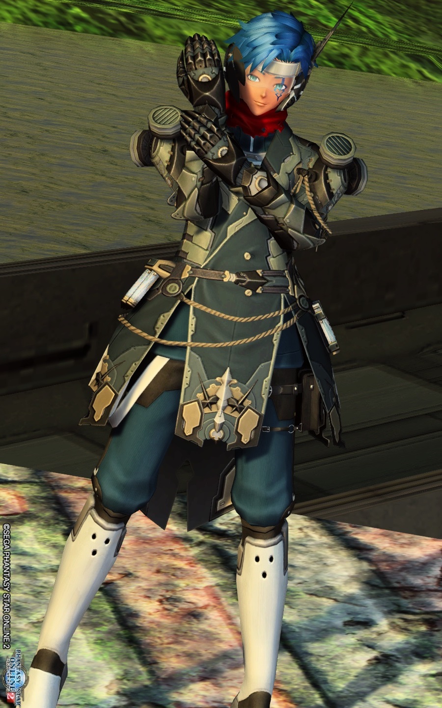 ヘッドギアは角度を変え、疑似的な額あて風に見立てて使っています。